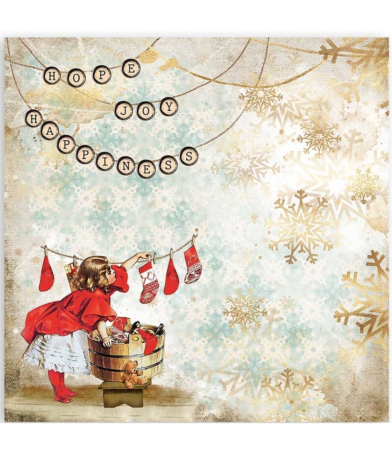 Feuille de papier scrapbooking double face (2 motifs) sans acide. Collection ROMANTIC CHRISTMAS de STAMPERIA.
