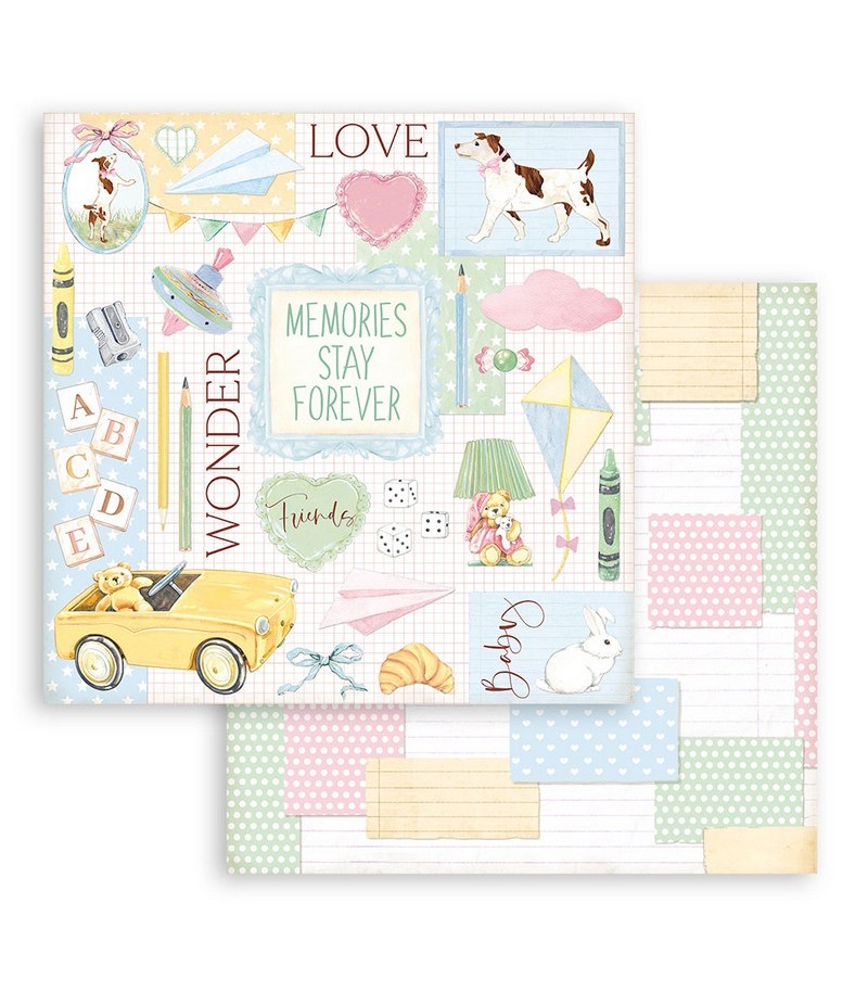 Feuille de papier scrapbooking double face (2 motifs) sans acide. Collection DAYDREAM de STAMPERIA.