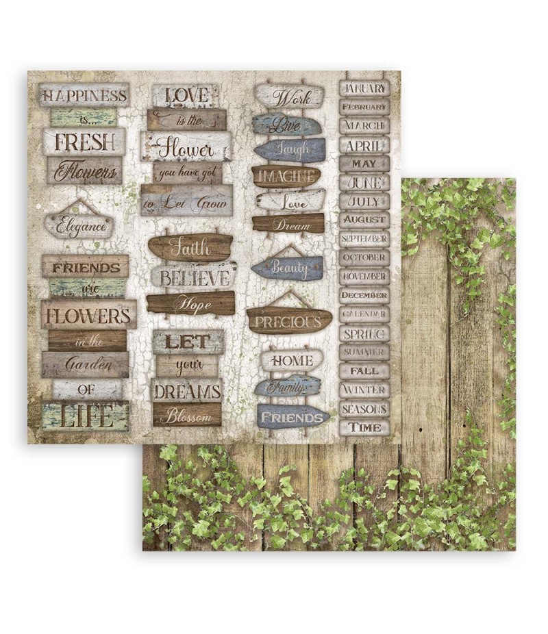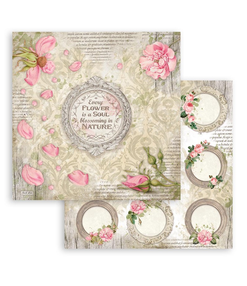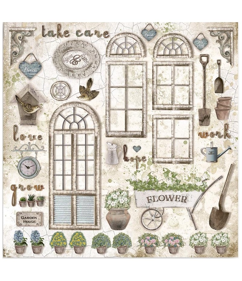 Bloc de 10 feuilles de papier double face (2 motifs) sans acide. Nouvelle Collection ROMANTIC GARDEN HOUSE - STAMPERIA SBBL102