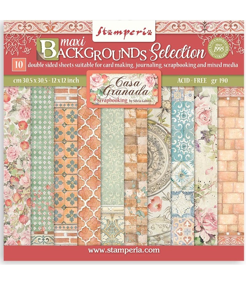 Bloc de 10 feuilles de papier double face (2 motifs) sans acide. Nouvelle Collection CASA GRANADA - STAMPERIA SBBL108