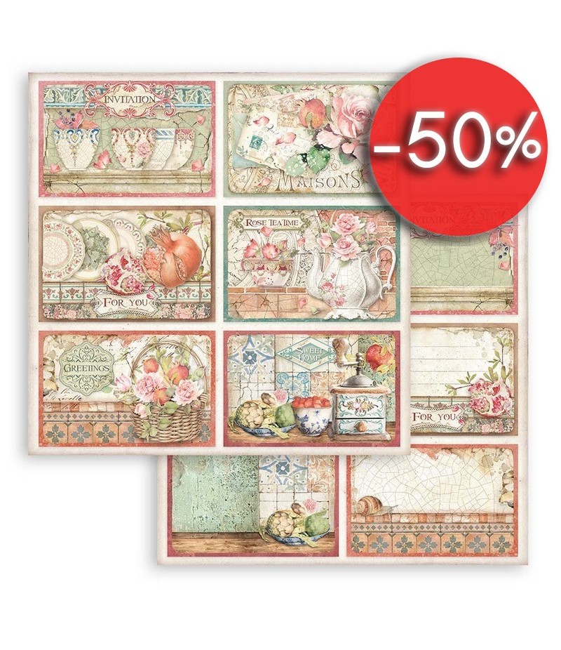 Feuille de papier scrapbooking double face (2 motifs) sans acide. Collection CASA GRANADA de STAMPERIA.