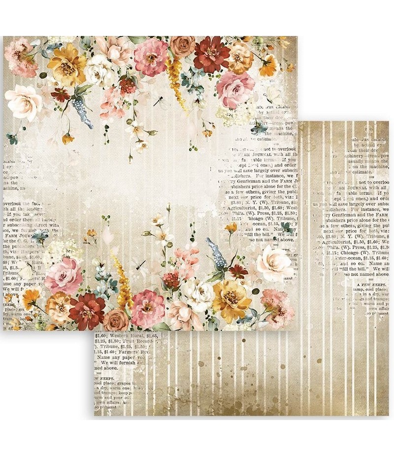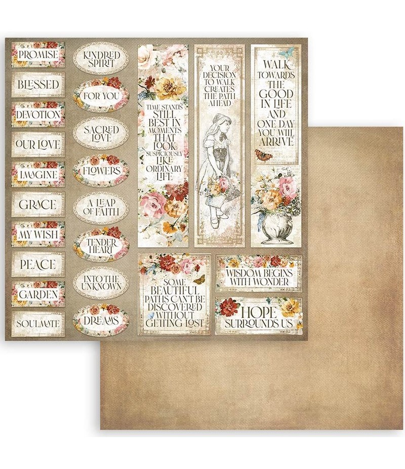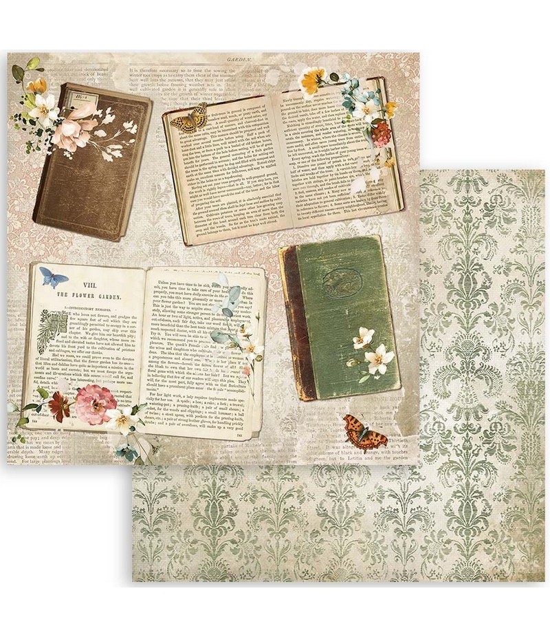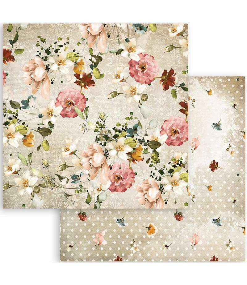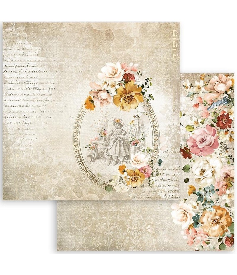Bloc de 10 feuilles de papier double face (2 motifs) et 2 bonus sur les couvertures, sans acide. Nouvelle Collection ROMANTIC GARDEN OF PROMISES - STAMPERIA SBBL110