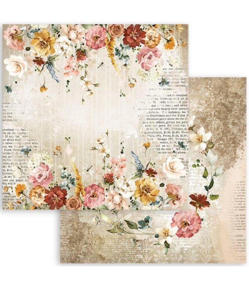 Feuille de papier scrapbooking double face (2 motifs) sans acide. Collection ROMANTIC GARDEN OF PROMISES de STAMPERIA.