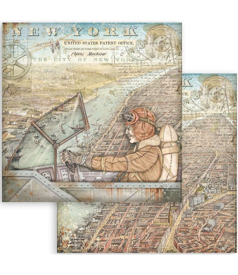 Feuille de papier scrapbooking double face (2 motifs) sans acide. Collection SIR VAGABOND AVIATOR de STAMPERIA.