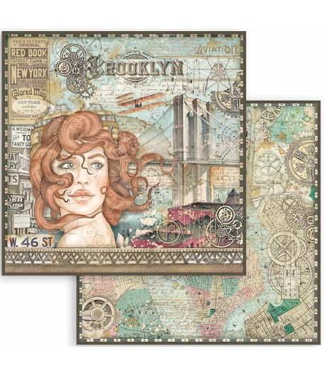 Feuille de papier scrapbooking double face (2 motifs) sans acide. Collection SIR VAGABOND AVIATOR de STAMPERIA.