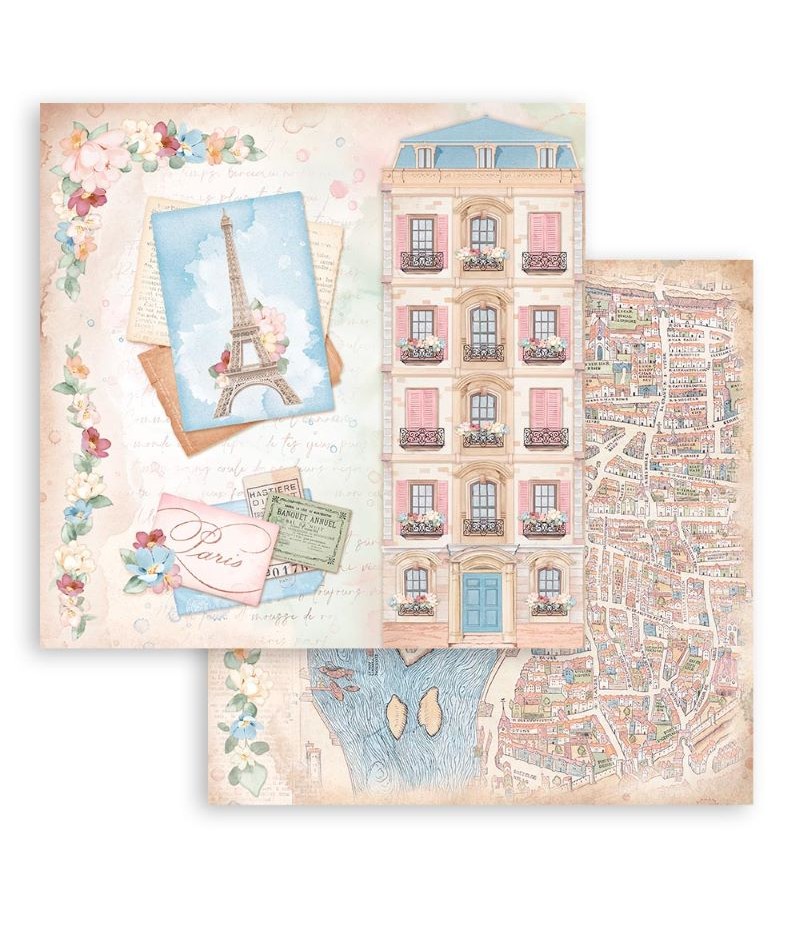 Feuille de papier scrapbooking double face (2 motifs) sans acide. Collection OH LA LA by Vicky PAPAIOANNOU de STAMPERIA. SBB927