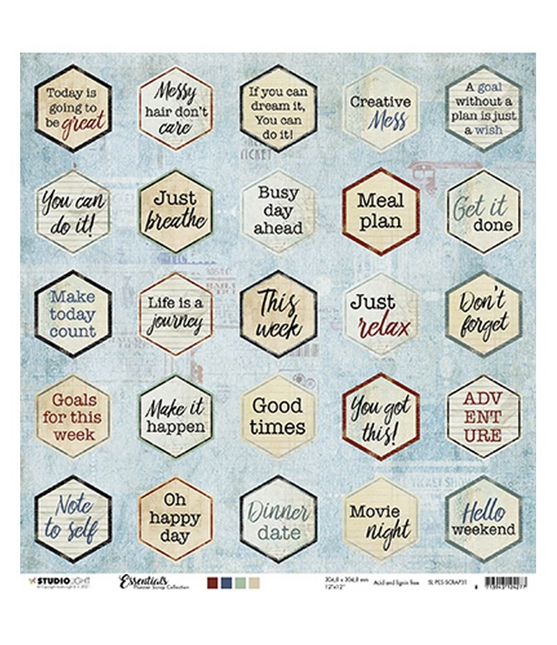Feuille de papier double face (2 motifs) sans acide collection "Planner Essentials" de StudioLight.
