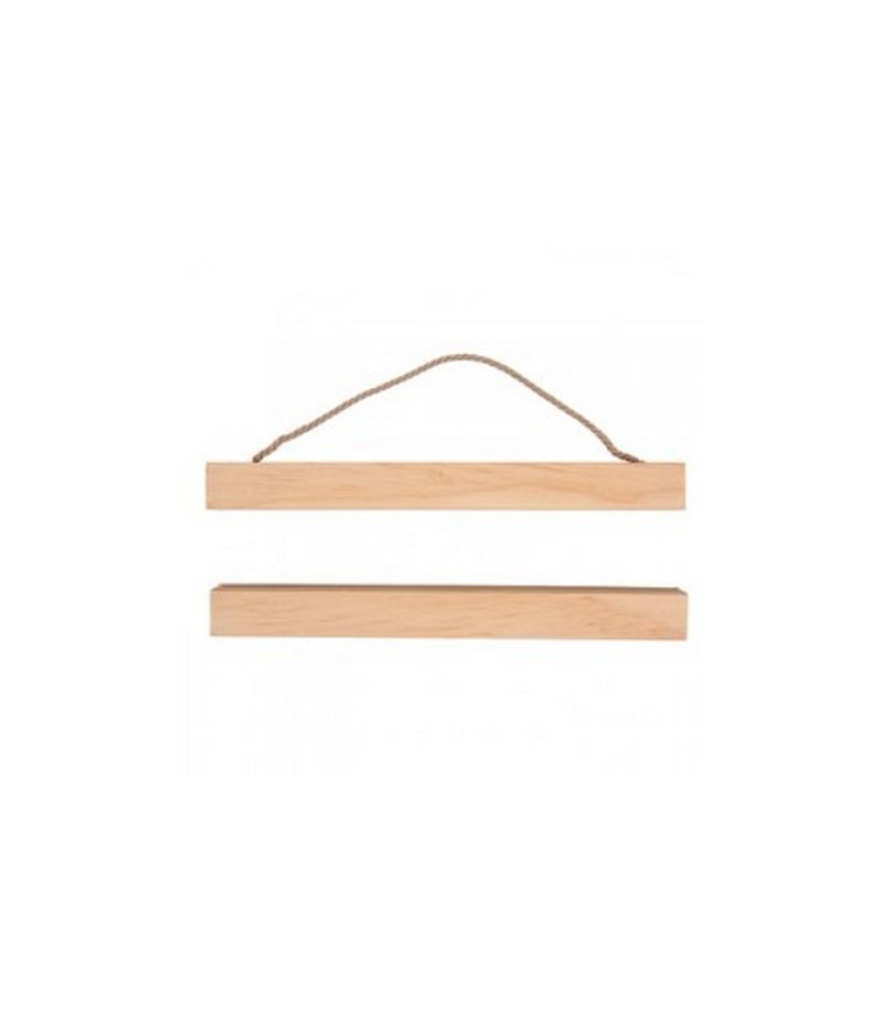 Supports en bois pour suspendre des broderies ou des posters. Contient 2 supports, dont un avec une cordelette et une clé pour vis.