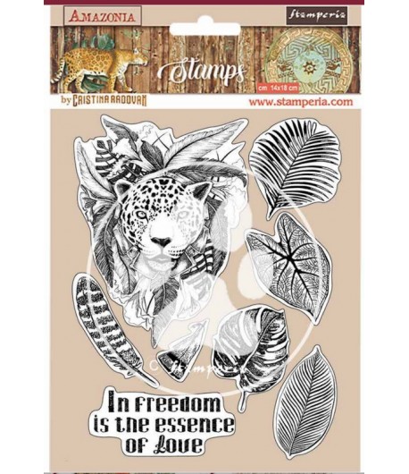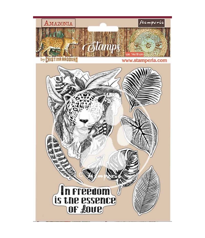 8 Tampons en caoutchouc Haute Définition. A utiliser avec un bloc acrylique. Collection AMAZONIA de STAMPERIA.