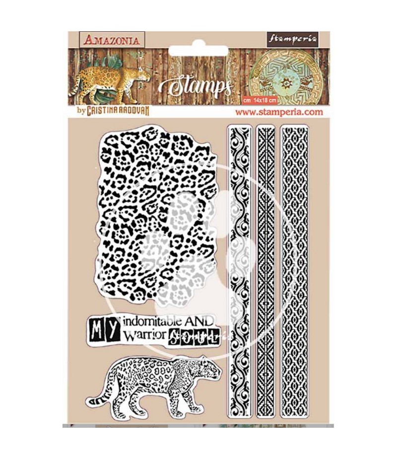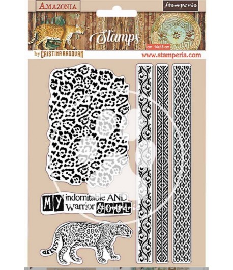 6 Tampons en caoutchouc Haute Définition. A utiliser avec un bloc acrylique. Collection AMAZONIA de STAMPERIA.