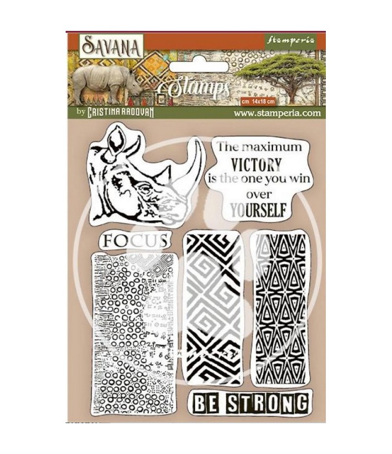 7 Tampons en caoutchouc Haute Définition. A utiliser avec un bloc acrylique. Collection SAVANA by Cristina RADOVAN de STAMPERIA.