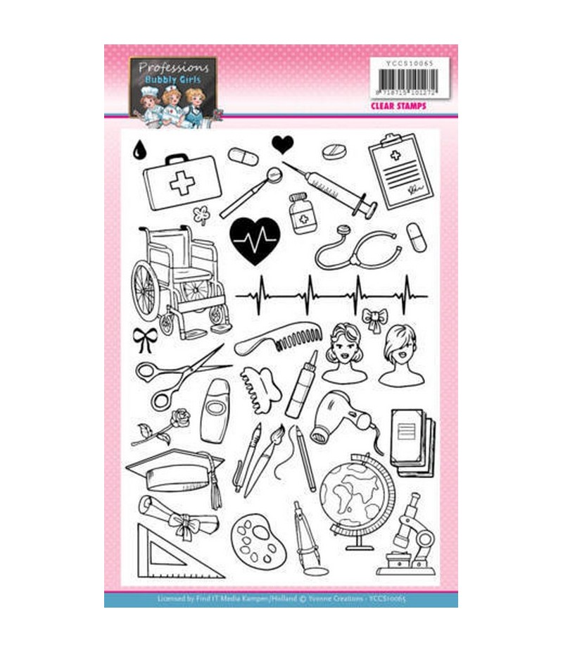 37 Tampons transparents. A utiliser avec encreur et bloc acrylique. BUBBLY GIRLS - PROFESSIONS YCCS10065