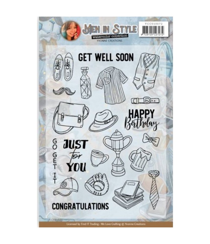 21 Tampons transparents. A utiliser avec encreur et bloc acrylique. MEN IN STYLE - YCCS10072