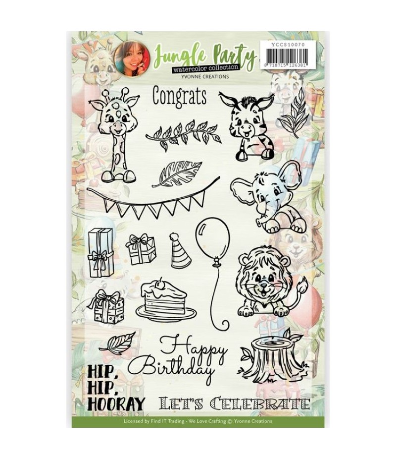 21 Tampons transparents. A utiliser avec encreur et bloc acrylique. JUNGLE PARTY - YCCS10070