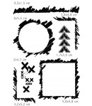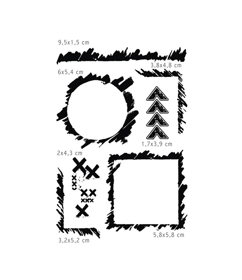 Dimensions de la planche : 10.2 x 14.5 cm. Tampons : entre 1.5 et 9.5 cm