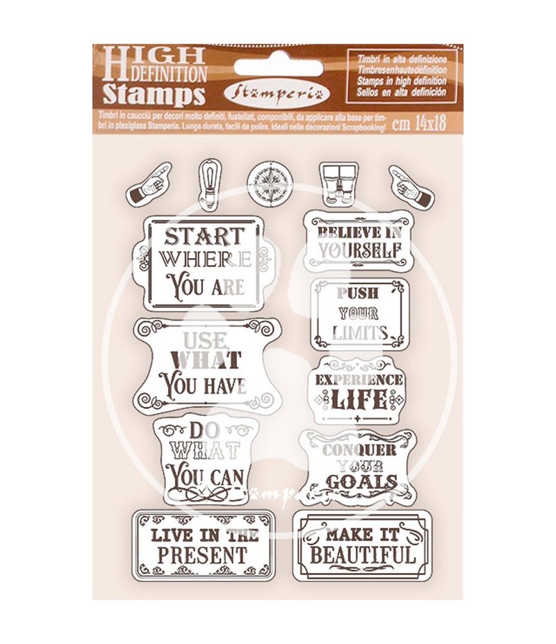 14 Tampons en caoutchouc Haute Définition. A utiliser avec un bloc acrylique. Collection LADY VAGABOND LIFESTYLE de STAMPERIA.