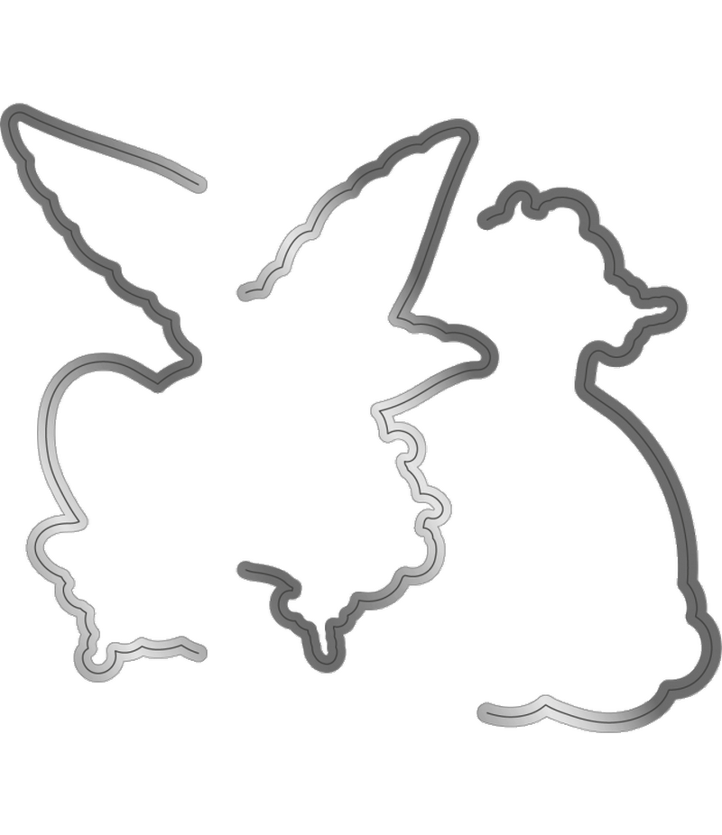 Dans chaque ensemble, vous trouverez les tampons et 3 dies qui vous permettront de découper le haut, la gauche ou la droite du personnage, afin d'obtenir une carte avec une jolie bordure..