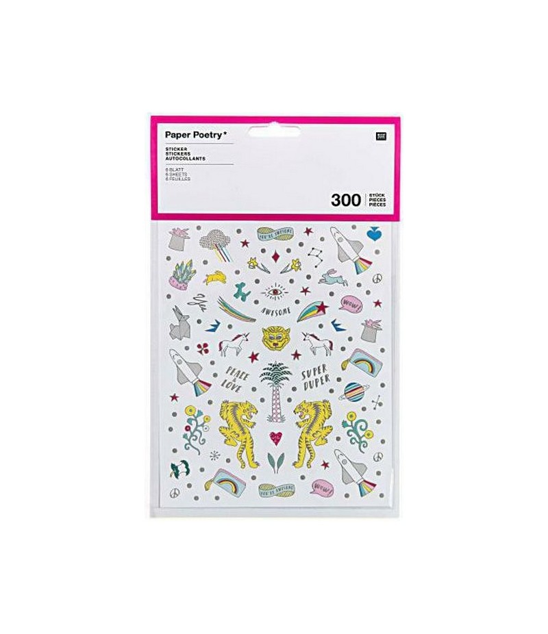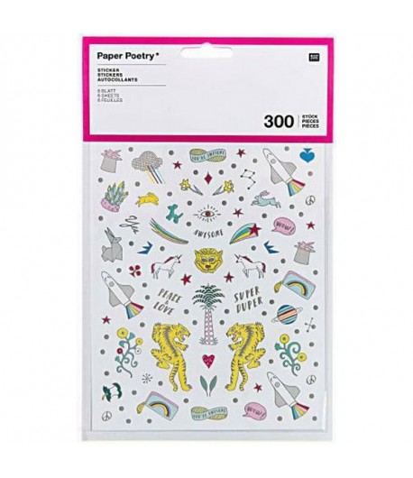 6 Feuillets de stickers autocollants - 3 modèles différents - 300 stickers.
