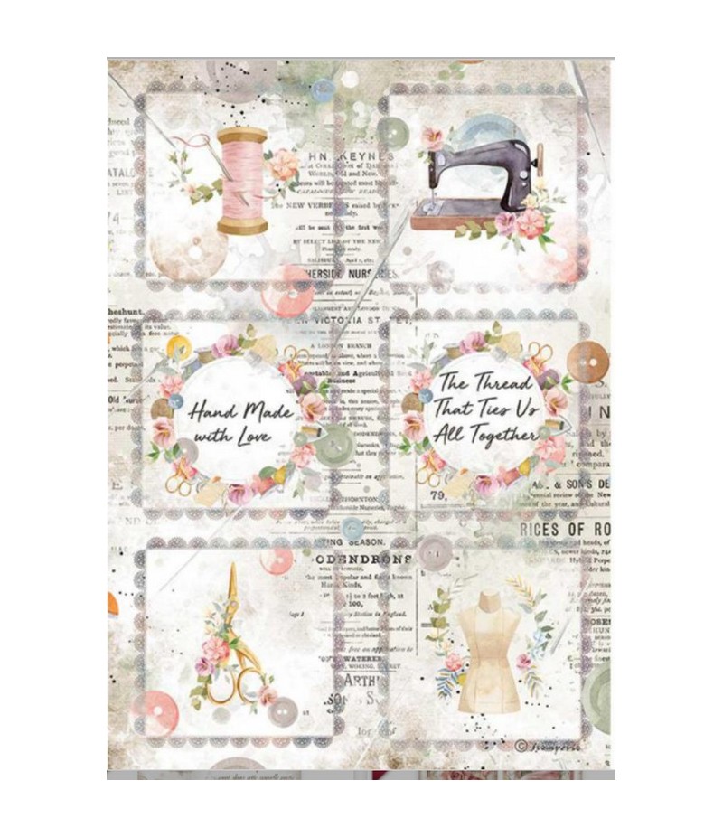 Papier de riz imprimé A4 - 21 x 29.7 cm - Collection ROMANTIC THREADS de STAMPERIA - DFSA4568