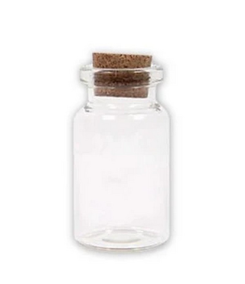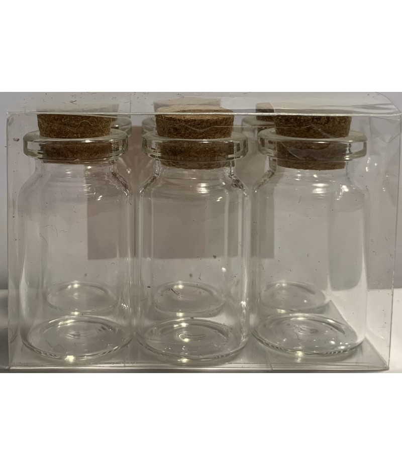 6 mini flacons en verre avec bouchon en liège dans une petite boite en plastique. SBA393