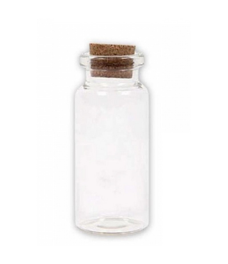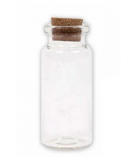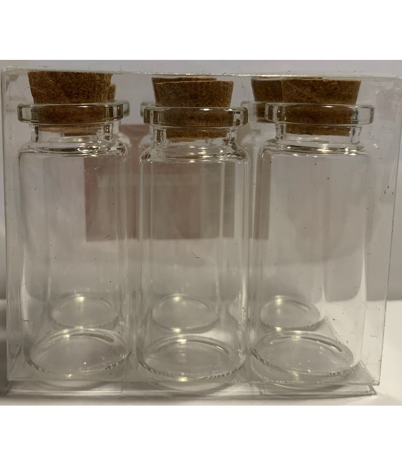 6 mini flacons en verre avec bouchon en liège dans une petite boite en plastique. SBA394