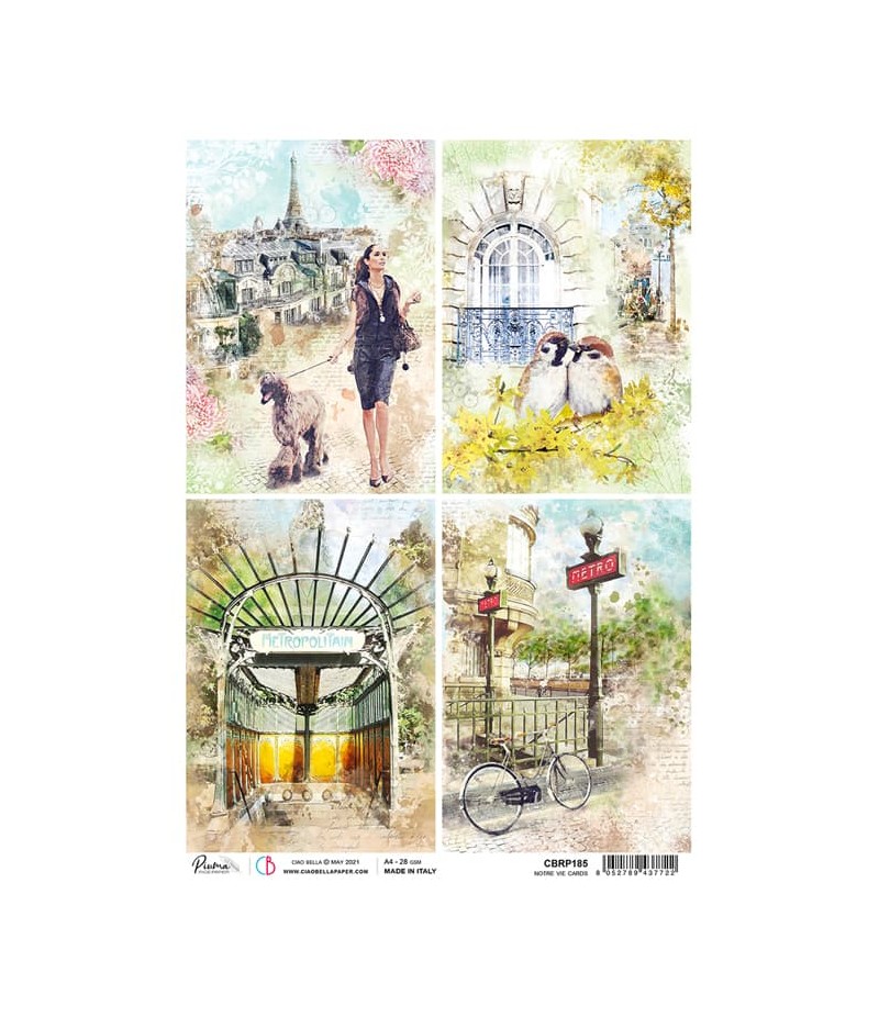 Papier de riz imprimé Ciao Bella 21 x 29.7 cm. CBRP185.