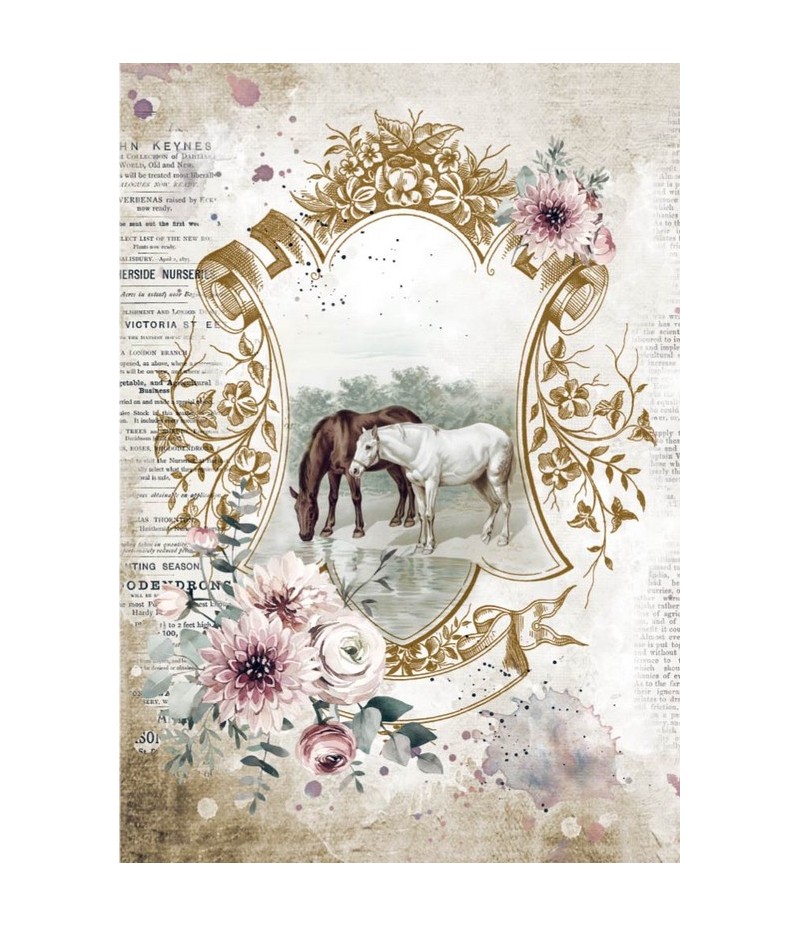 Papier de riz imprimé A4 - 21 x 29.7 cm - Collection ROMANTIC HORSES de STAMPERIA - DFSA4582