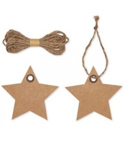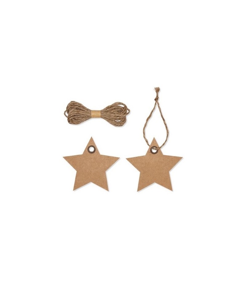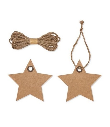 10 étoiles en papier kraft avec cordelette.