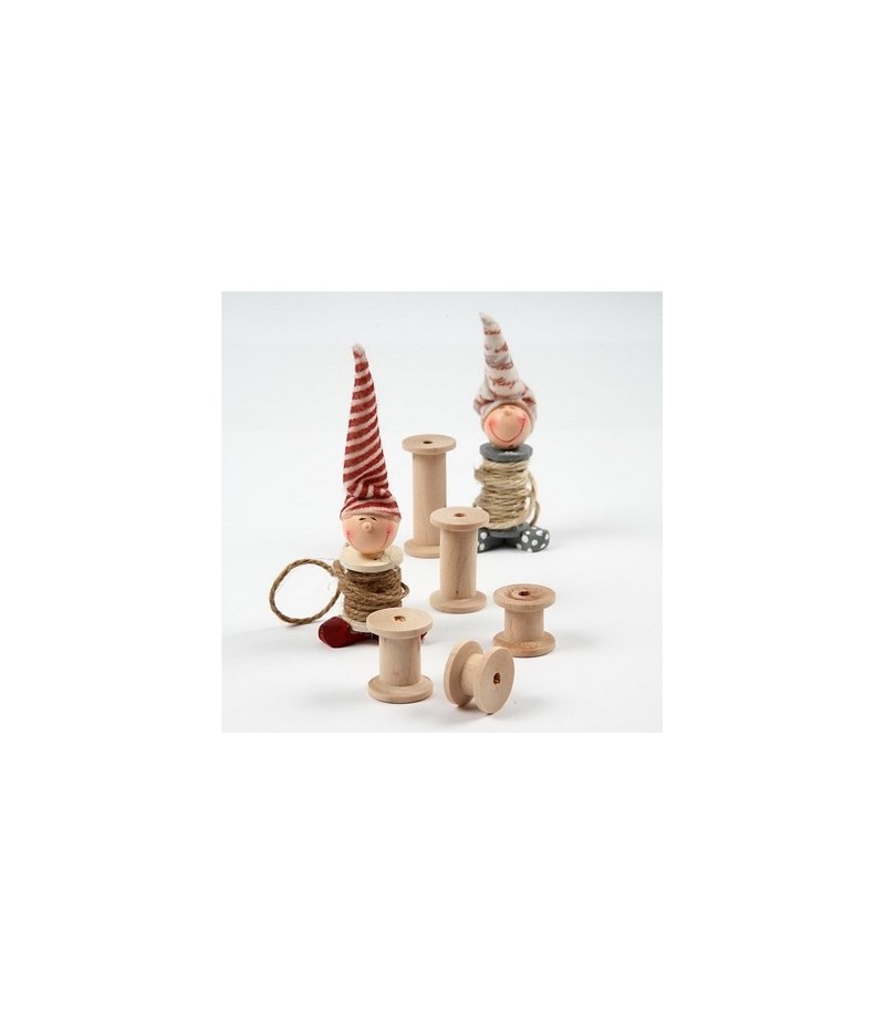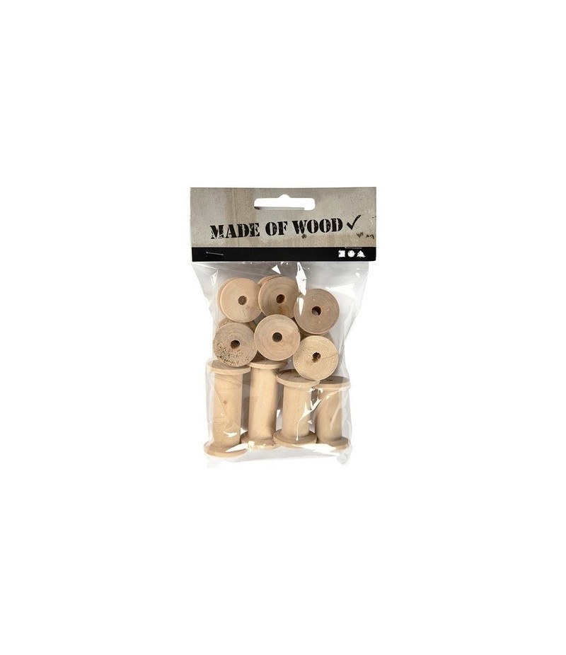 Lot de 10 bobines en bois clair. 5 tailles différentes.