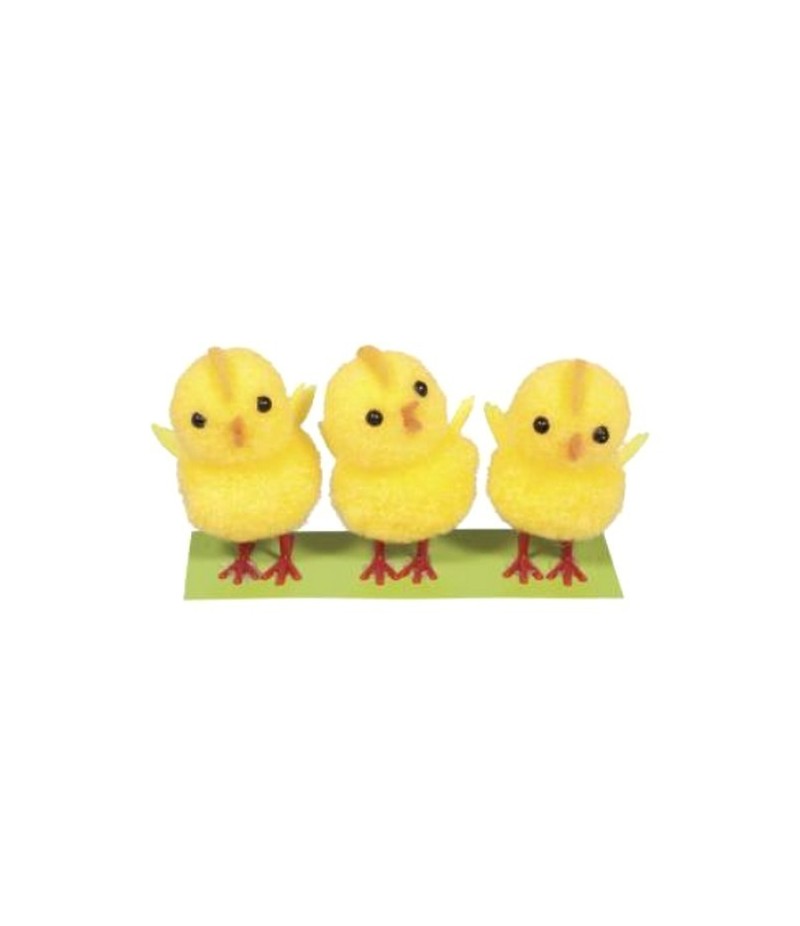3 poussins tous doux dans une boite plexi pour vos décos de Pâques.