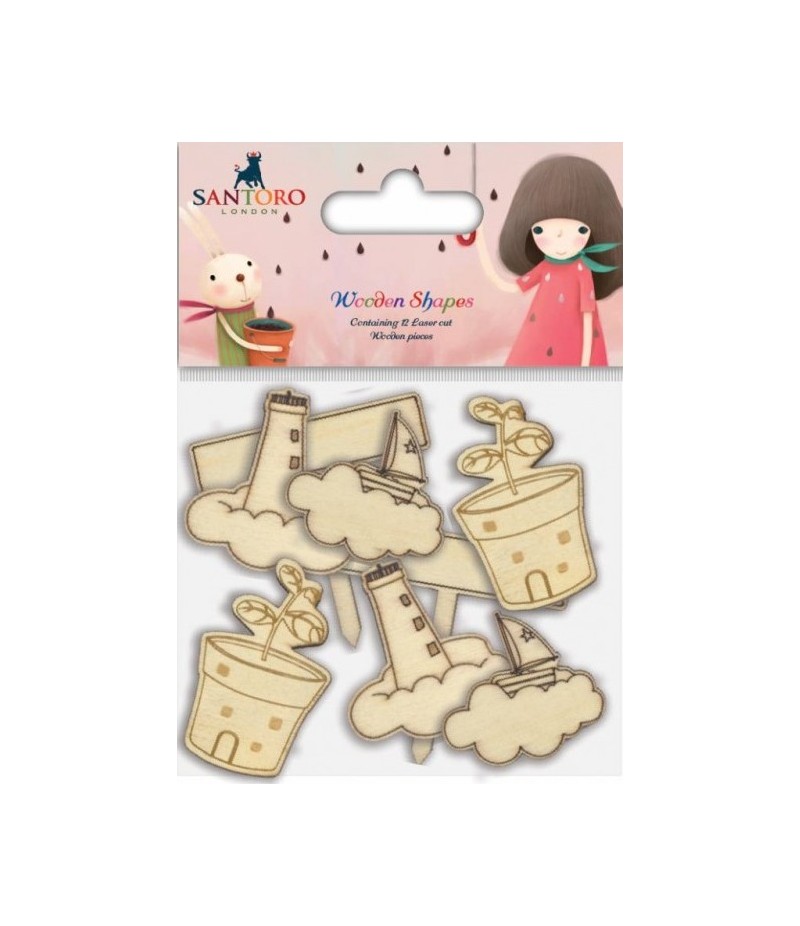 12 formes en bois pour embellir vos créations. Idéales pour la technique du mixed media ou vos pages de scrap.