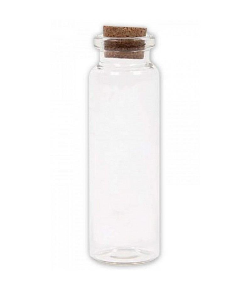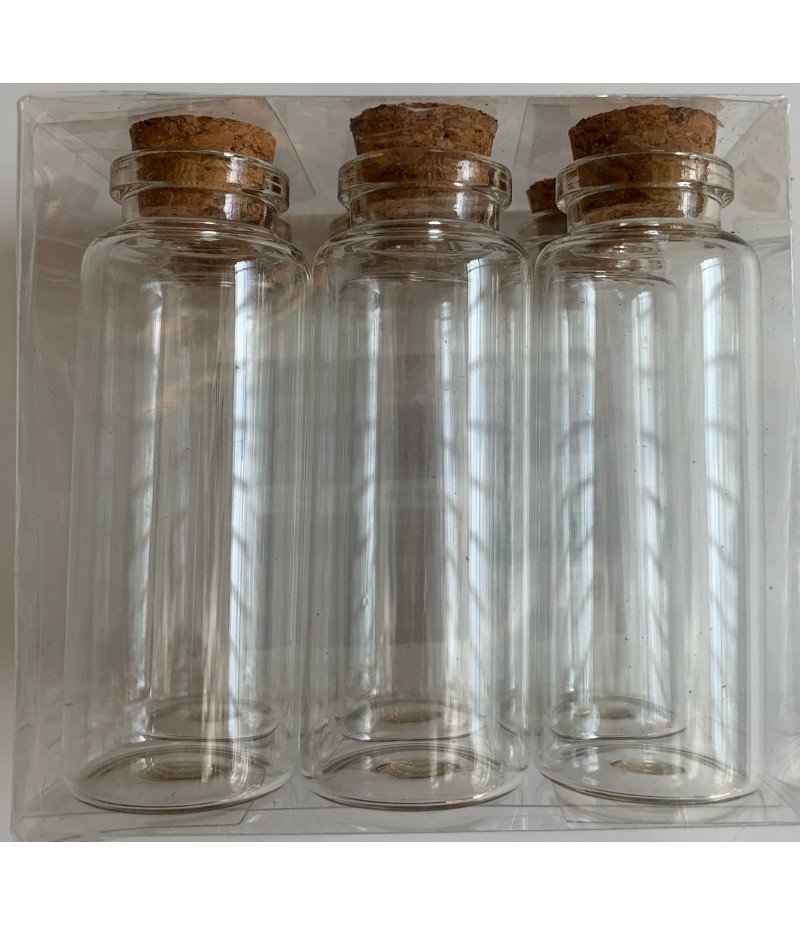 6 mini flacons en verre avec bouchon en liège dans une petite boite en plastique. SBA396