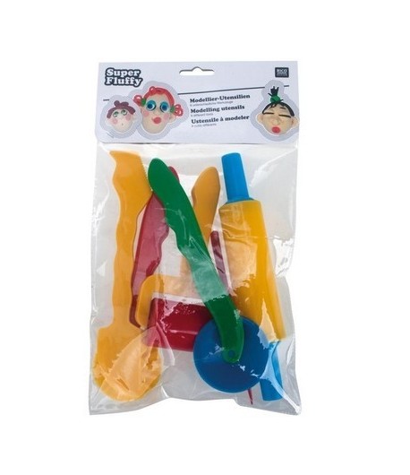 Lot de 6 ustensiles de modelage en plastique (1 roulette simple, 1 roulette ondulée, 1 couteau, 1 outil de modelage, 2 rouleaux).