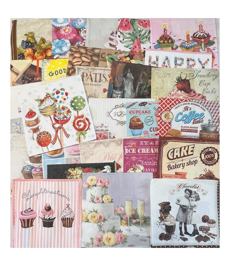 Lot de 30 serviettes différentes thème "Gourmandise".