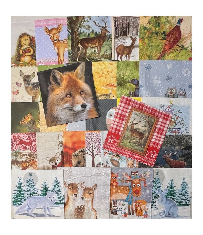 Lot de 30 serviettes différentes thème "Animaux de la Forêt".