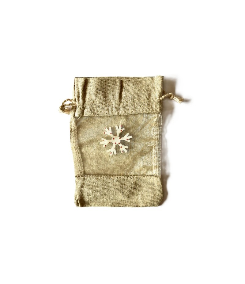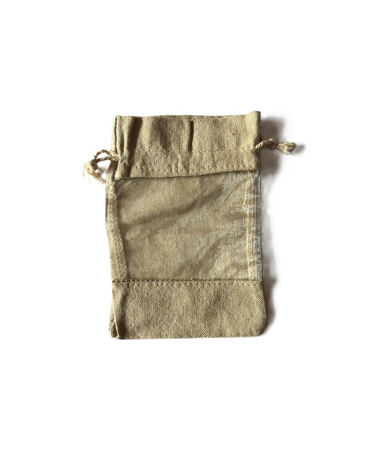 Sac en toile de jute et voile avec cordon.